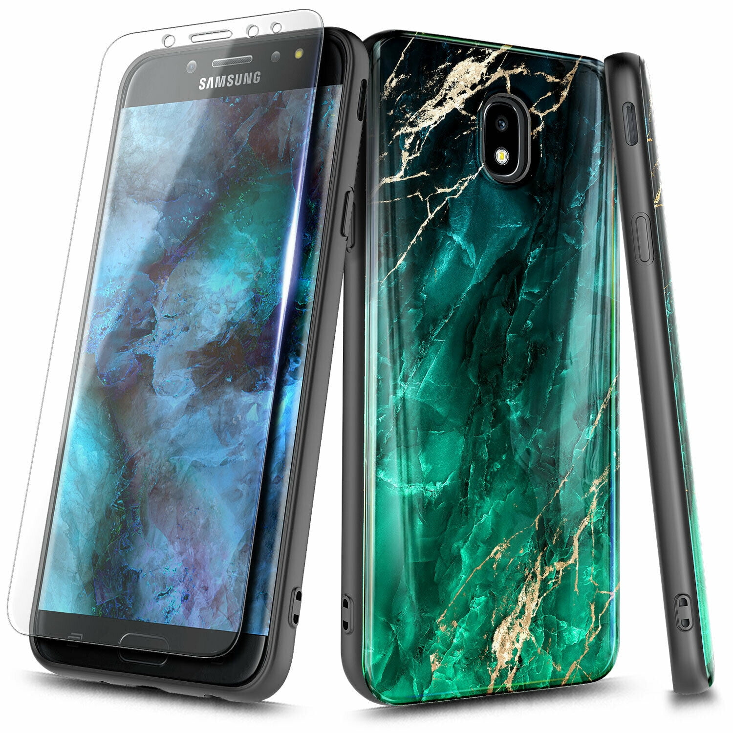 For Samsung Galaxy J3 2018 Case J3 Orbit J3 V 2018 J3 Star J3 Achieve Sol 3 With Tempered Glass Screen Protector Ultra Slim Thin Glossy Stylish Gold Glitter Marble Design Phone Cover Emerald